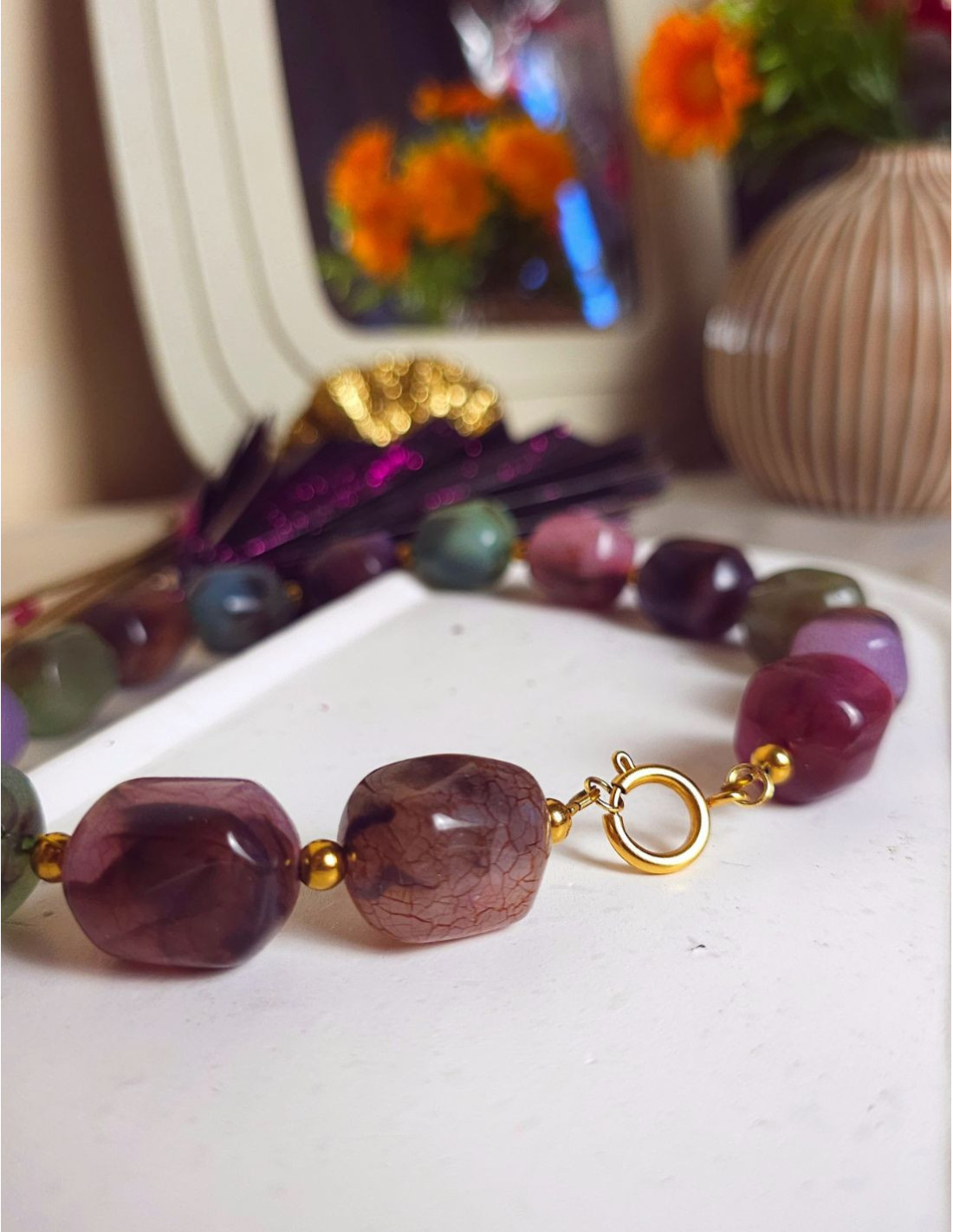 Un collier présent, coloré avec justesse, pensé pour sublimer une tenue en un seul geste.