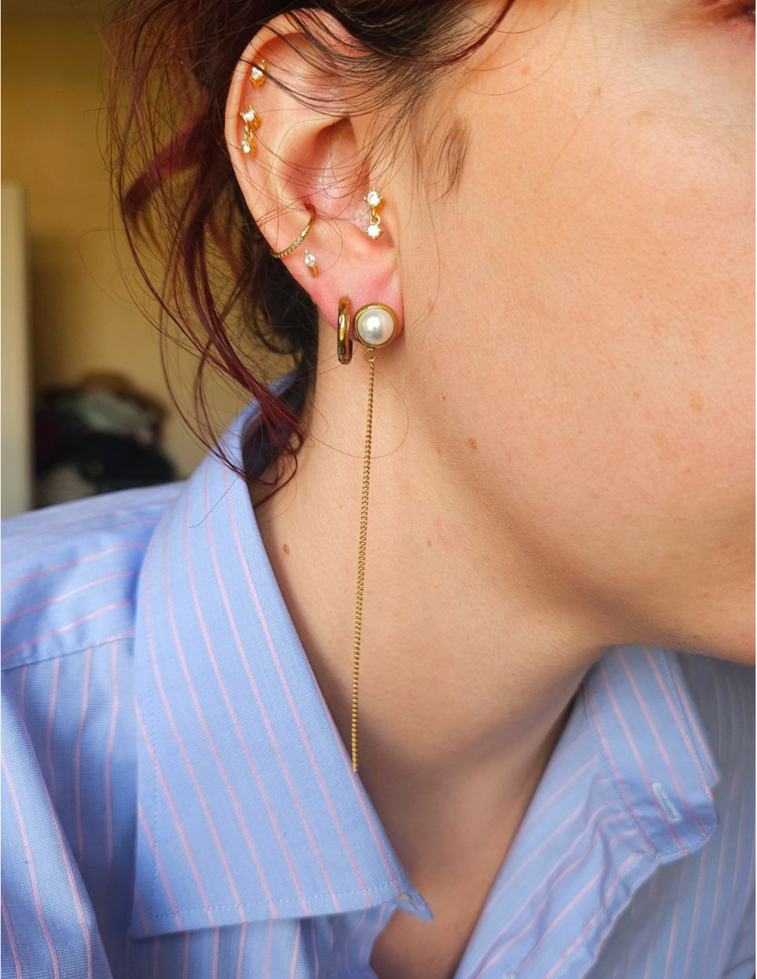Une lumière douce au creux de l’oreille, prolongée par une fine chaîne qui danse à chacun de tes gestes.